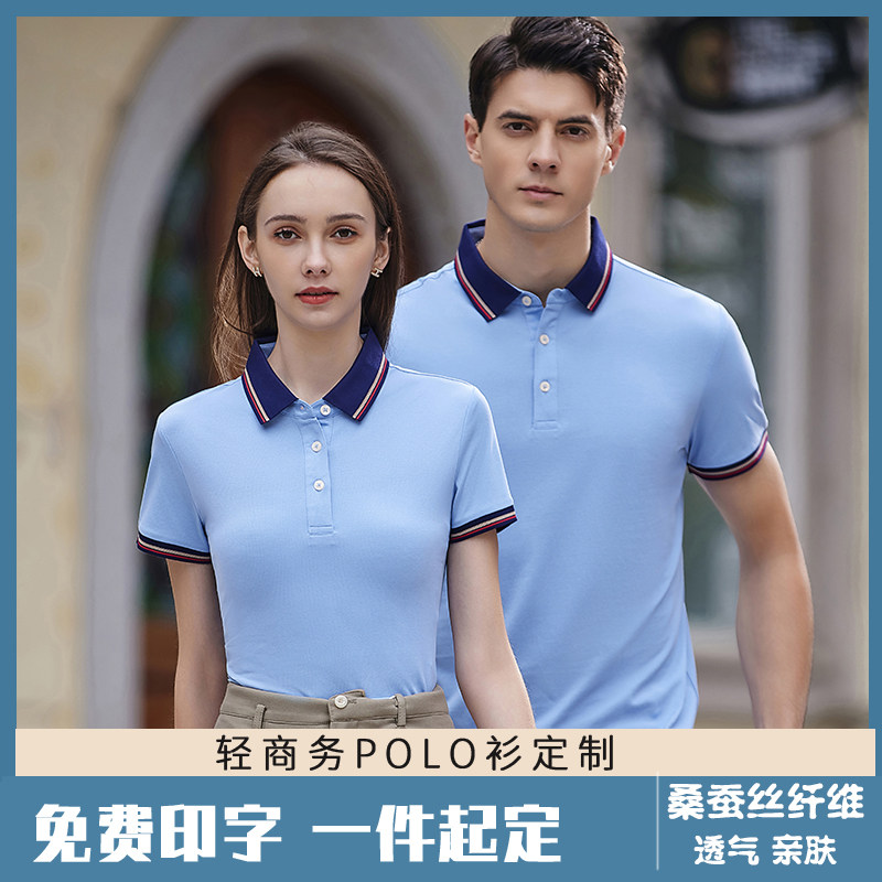 班赢乐工作服POLO衫定制印LOGO字工装T恤短袖工衣广告文化衫刺绣