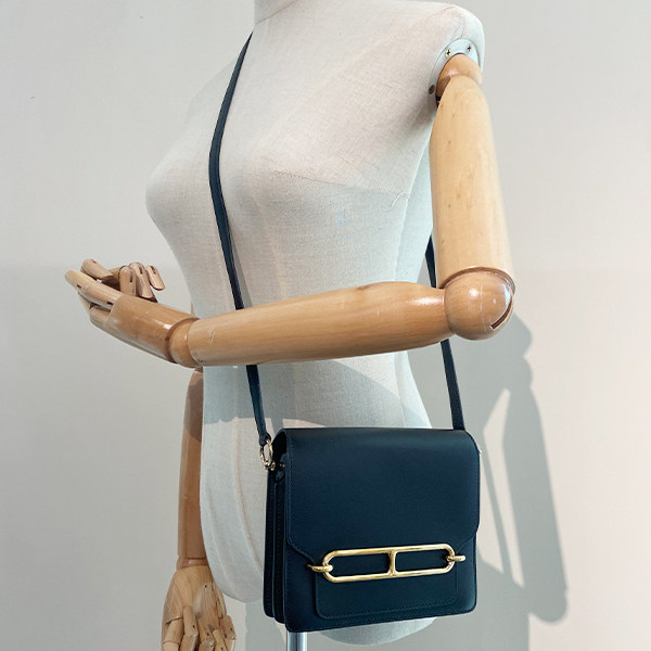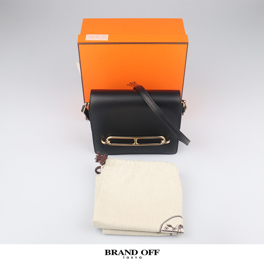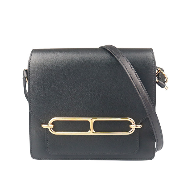 9新HERMES爱马仕ROULIS黑色EVERGRAIN皮迷你斜挎二手奢侈品包包