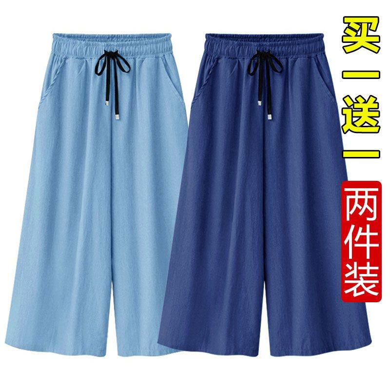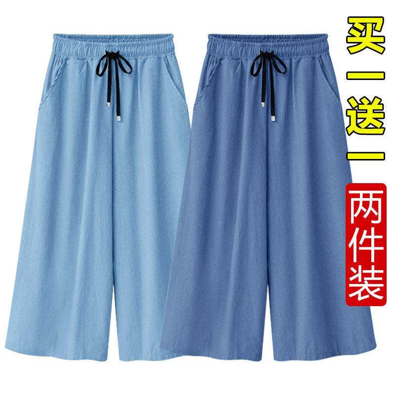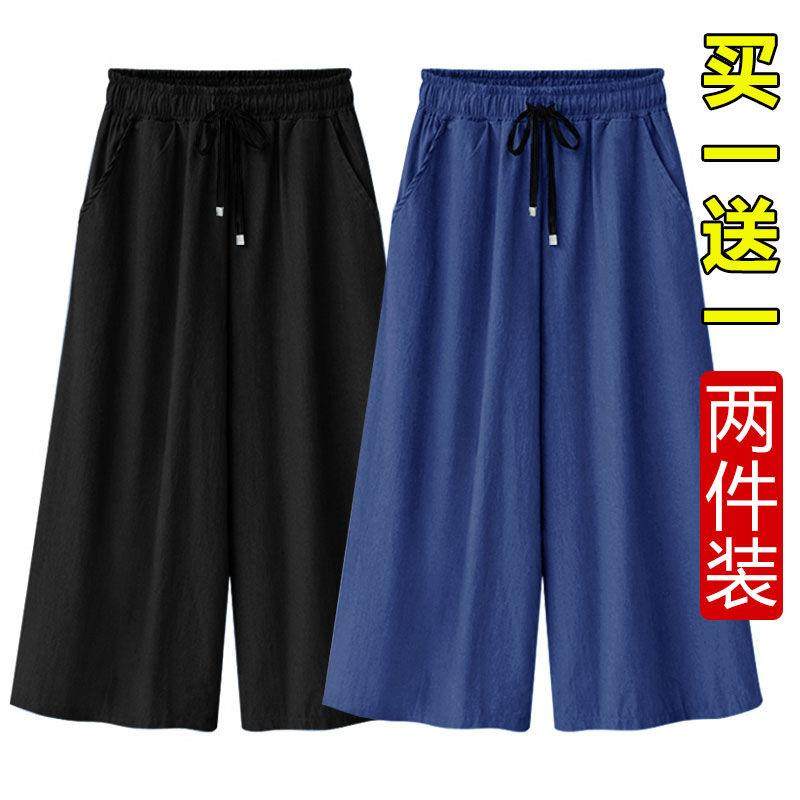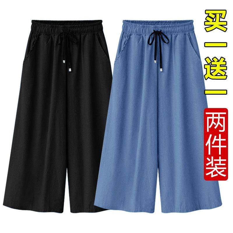 单/两件 松紧腰阔腿裤女夏季冰丝中年女裤休闲高腰宽松大码七分裤