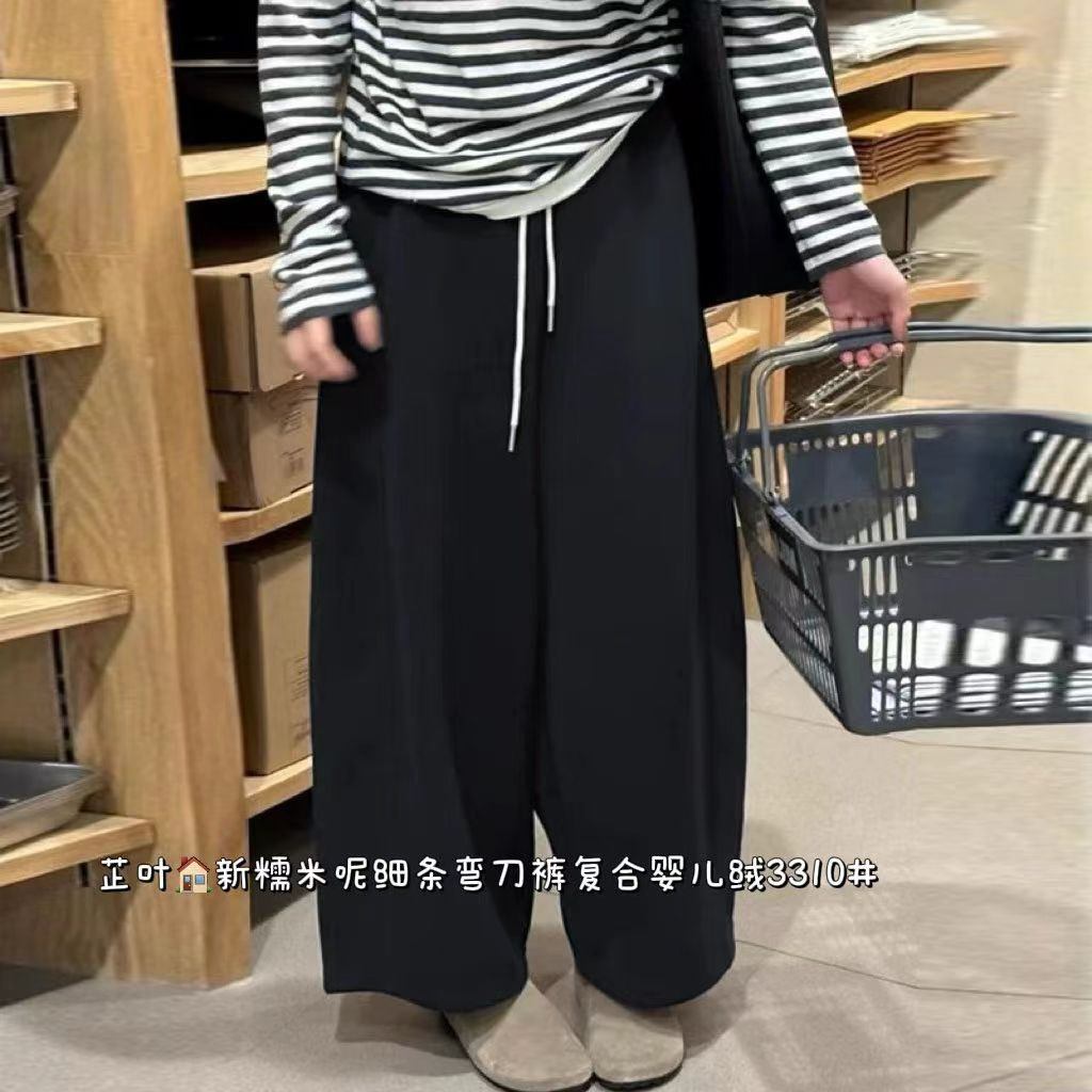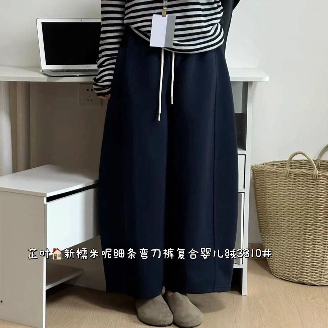 复合婴儿绒阔腿裤女冬季新款松紧腰抽绳百搭宽松休闲弯刀裤汪0.74