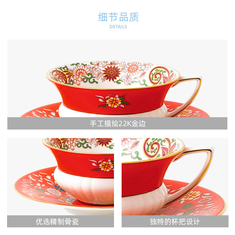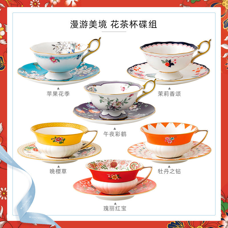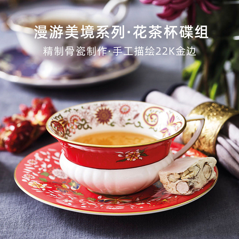 【自营】WEDGWOOD威基伍德漫游美境杯碟组咖啡杯碟复古餐具瑰丽红