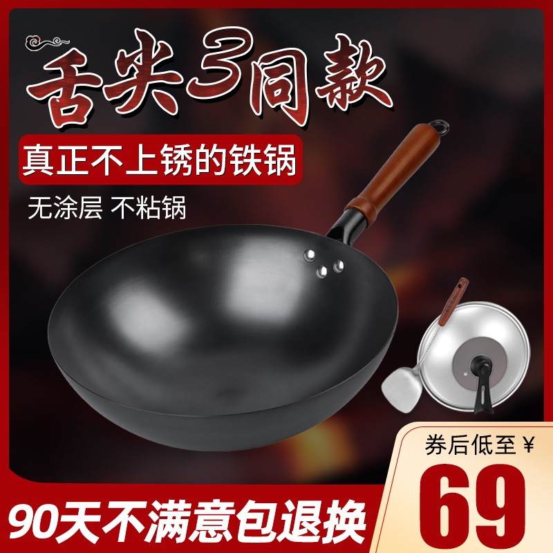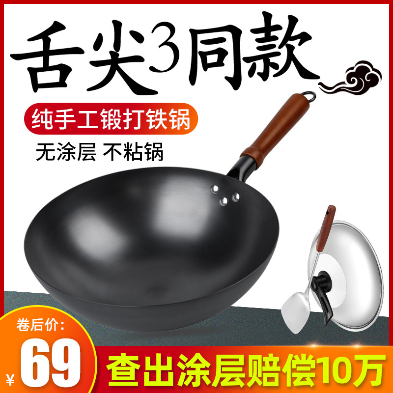 章丘正宗铁锅官方旗舰店正品炒锅家用不粘锅老式炒菜锅燃气灶通用