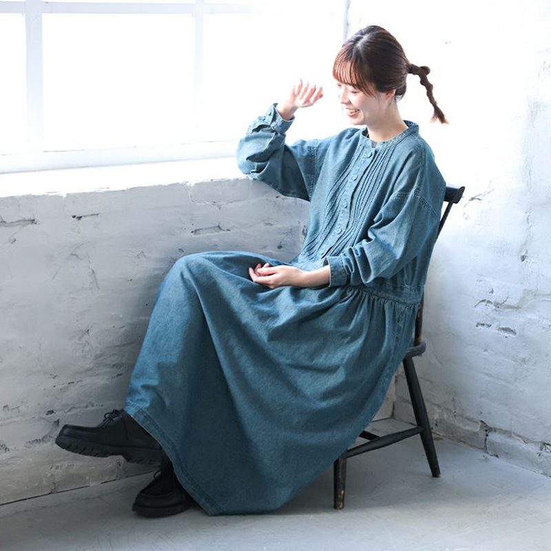 多次返单日本爆款2025春夏新款日本贵牌宽松长袖牛仔连衣裙