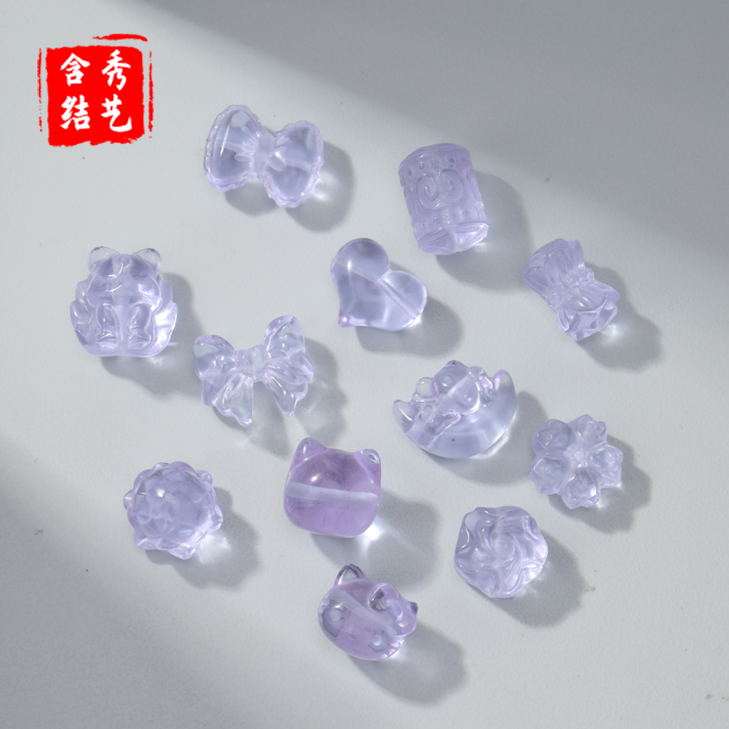 压电紫机晶熏衣草紫隔珠天然桶珠diy手链项链手工编织材料小配件