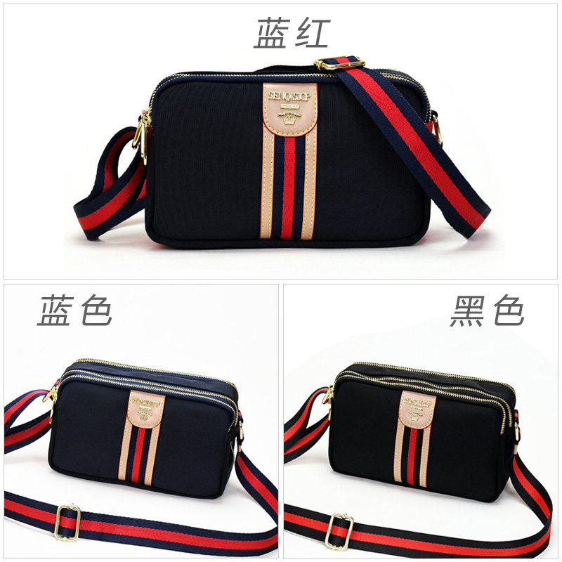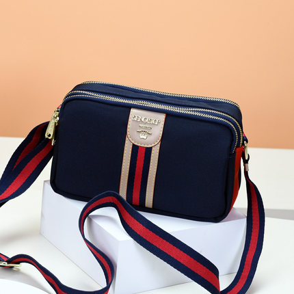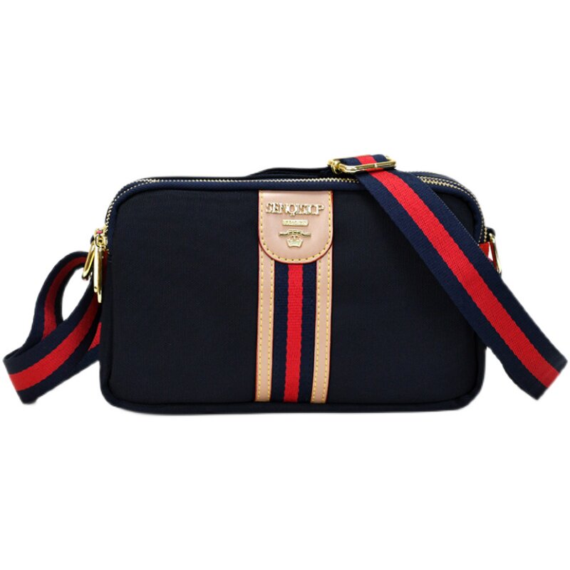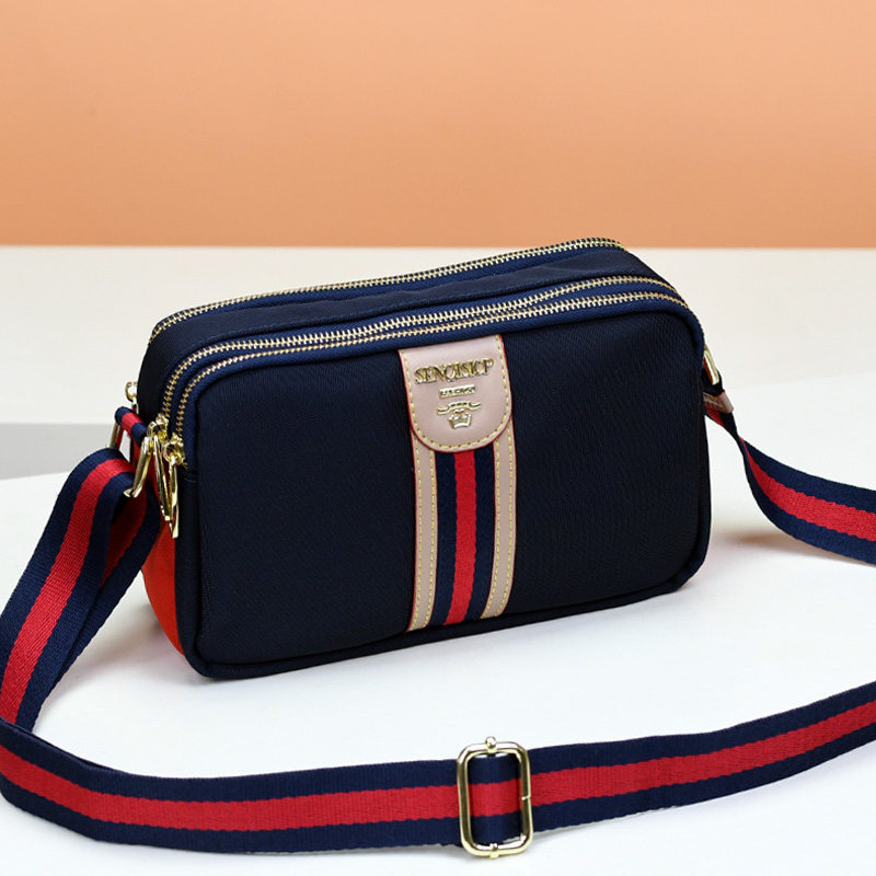 斜跨牛津布包包女撞色配皮小方包2025欧美时尚新款多层休闲单肩包