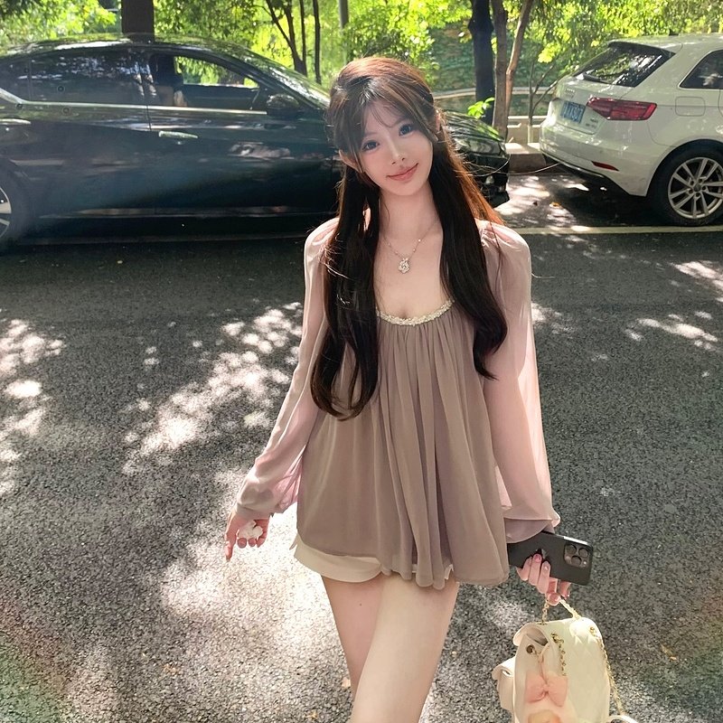 M900雪纺衫女2025年新款上衣轻奢高级感薄款气质宽松短款夏季长袖