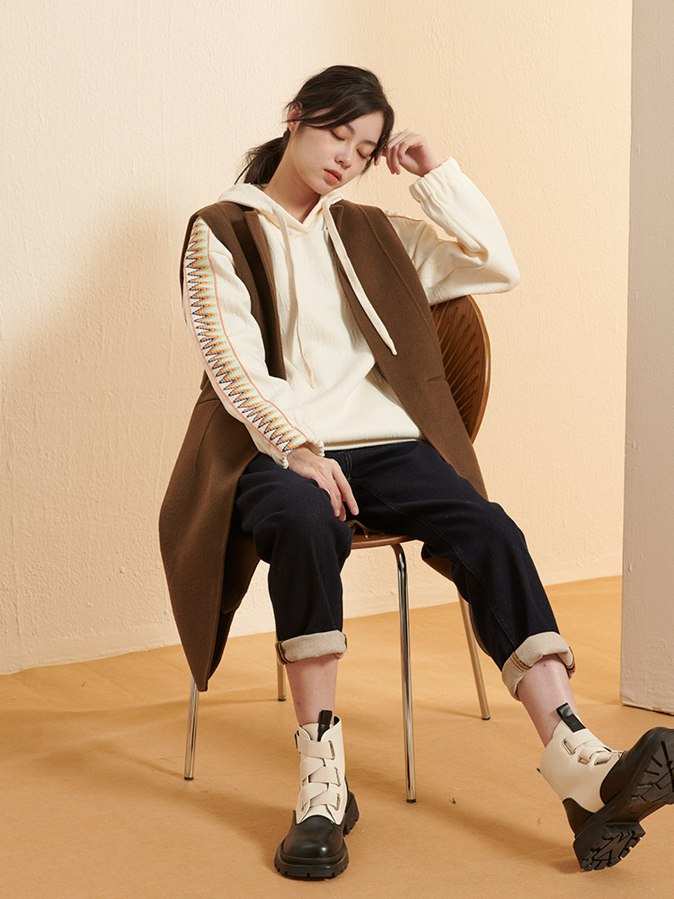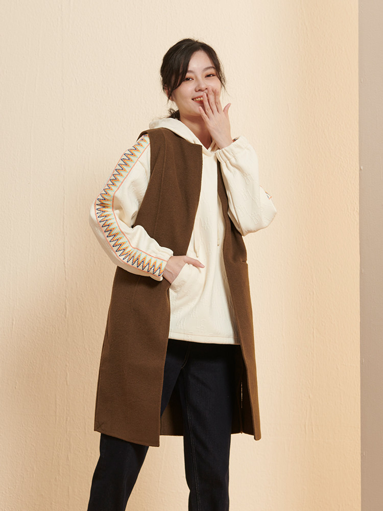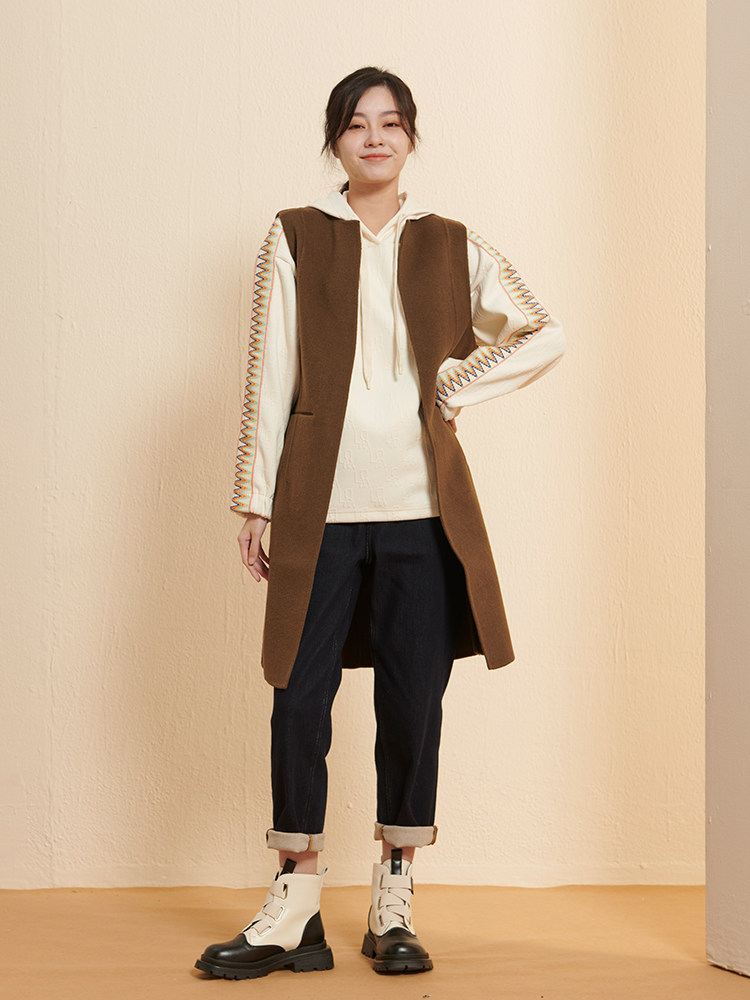 UGIZ商场同款2022年冬季新品韩版女装中长款毛呢马甲女UDEF537