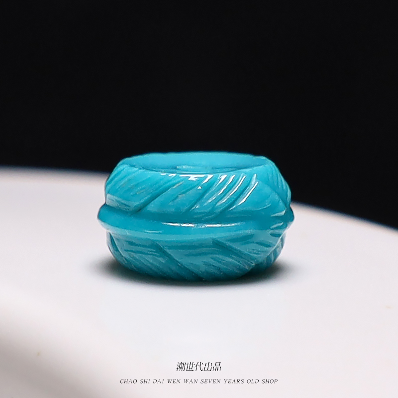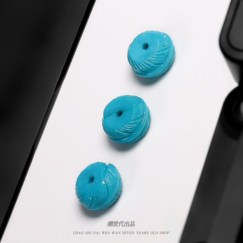 原矿湖北绿松石高瓷雕刻羽毛隔片隔珠星月金刚菩提手串DIY配饰