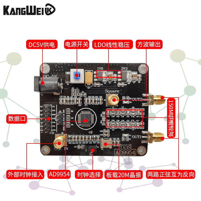 AD9954 DDS信号发生器模块 正弦波方波射频信号源 400M主频开发板