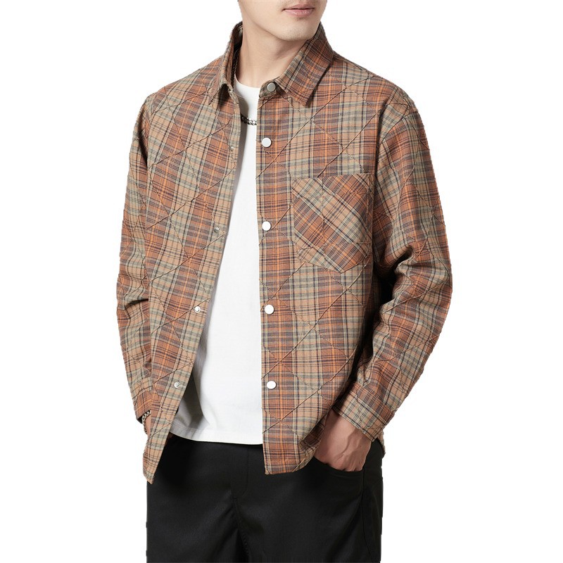 日本品质纯棉长袖衬衫男春秋款男士美式格子衬衫青年男装外套长袖
