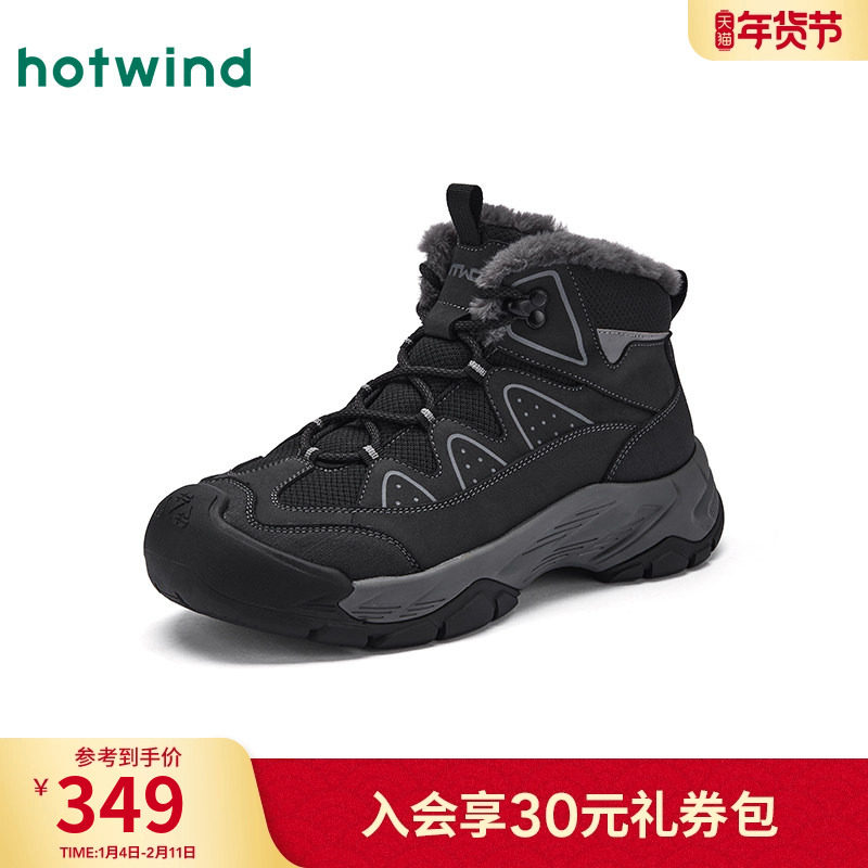 热风男鞋2025年冬季新款男士时尚休闲靴增高保暖舒适百搭马丁靴子