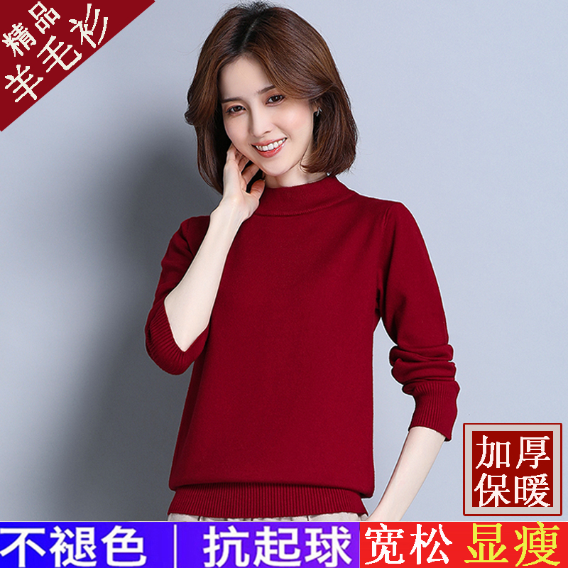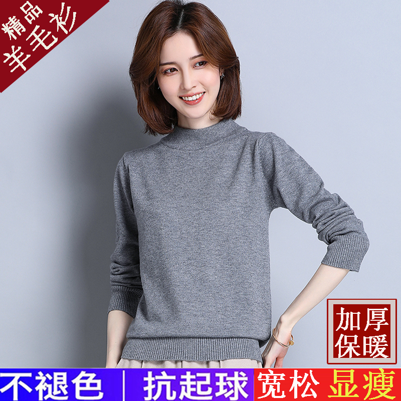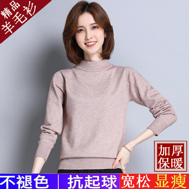 鄂尔多斯市羊毛衫女加厚半高领套头毛衣内搭宽松秋冬纯羊绒打底衫