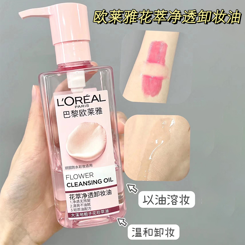 巴黎欧莱雅花萃净透卸妆油250ml温和不刺激深层清洁眼唇毛孔
