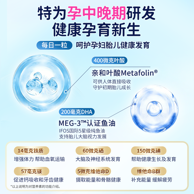 香港万宁爱乐维ELEVIT怀孕妈妈DHA配方港版30粒2段孕中后期