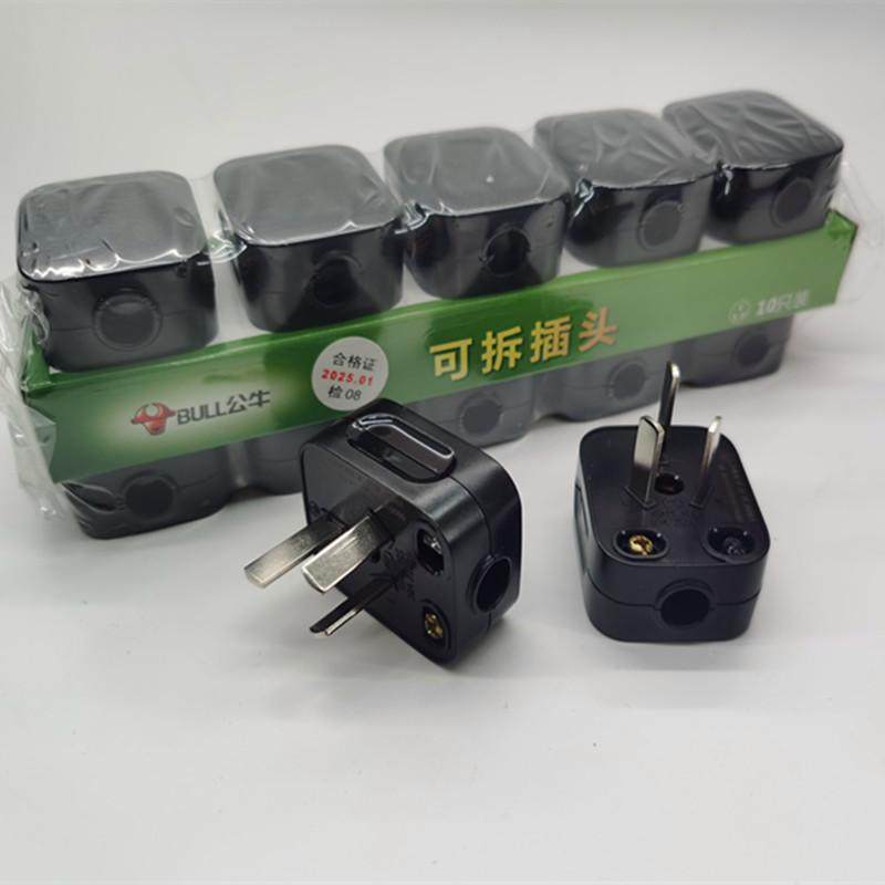 公牛黑色3插头三脚电线接线家用三角电源三孔GNT-10S三项10A插头