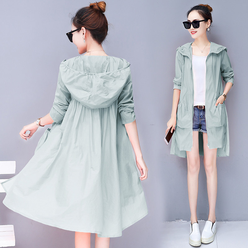 2025夏季新款透气防晒衣女中长款风衣宽松大码防晒服女薄款外套潮