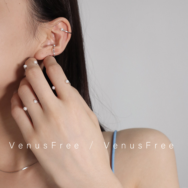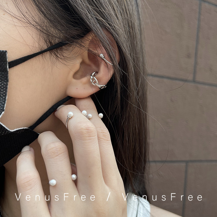 925纯银甜酷开口珍珠戒指耳夹