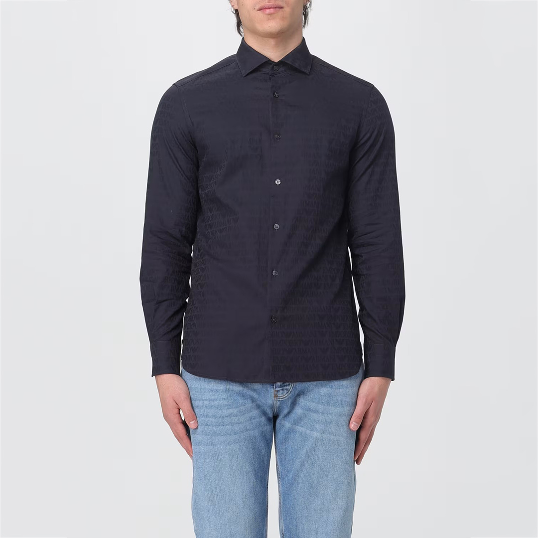 Armani/阿玛尼EA 男士暗纹鹰标时尚休闲长袖衬衫 3D1C86 1NIUZ
