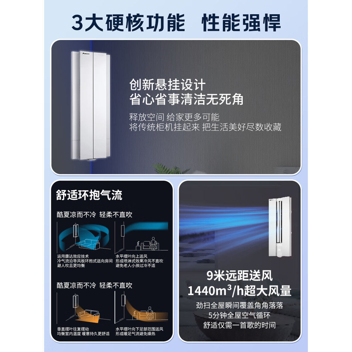大金悬角空调FKXW250WAC-W 2匹客厅冷暖挂机2级能效