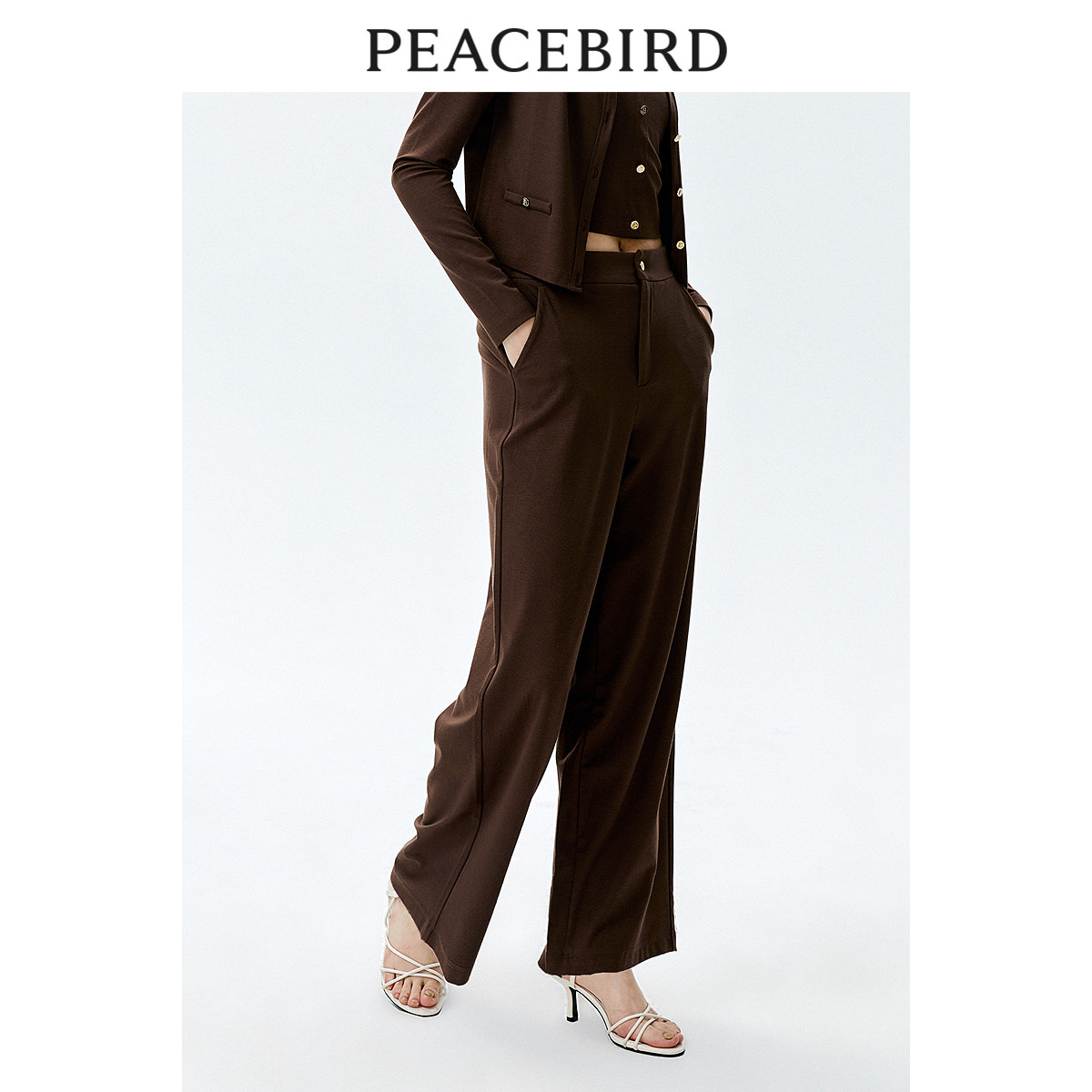 太平鸟女装春季简约气质针织长裤直筒高腰休闲裤A1GBE1508