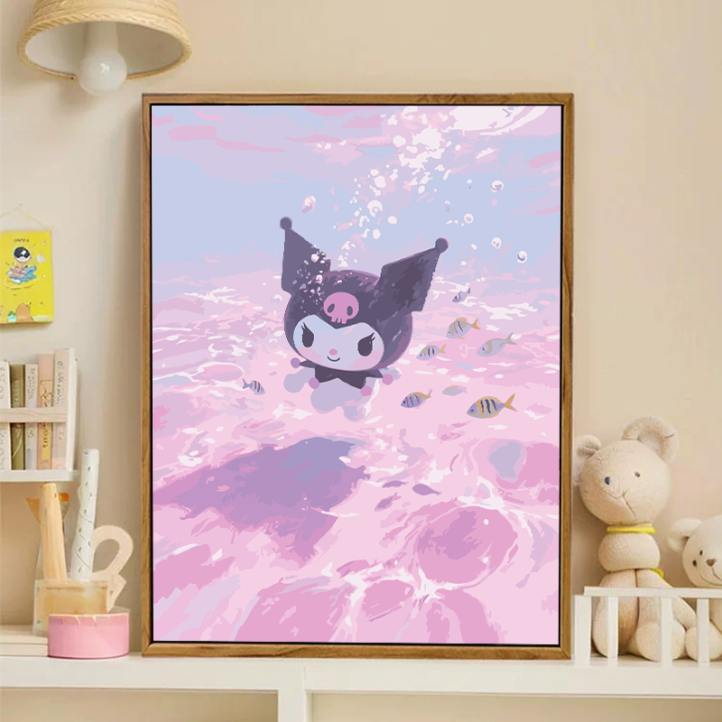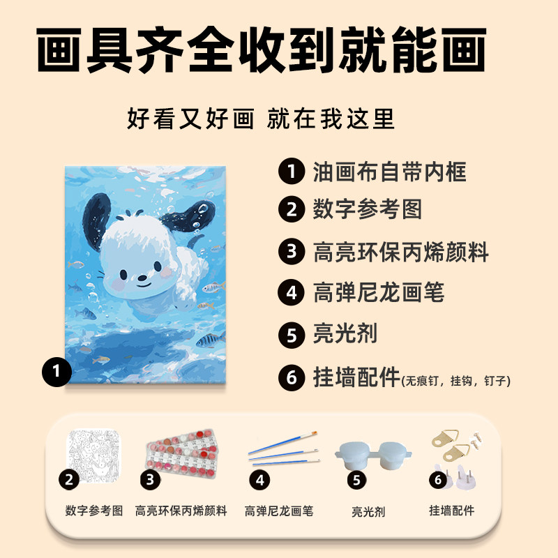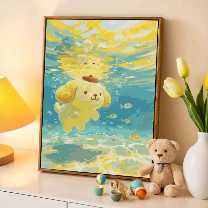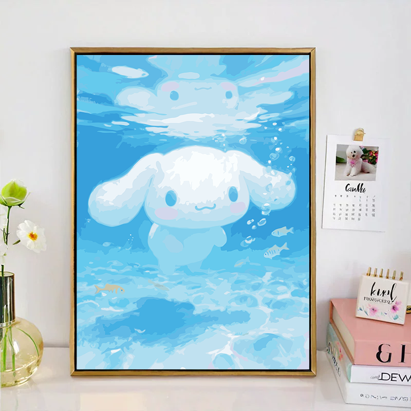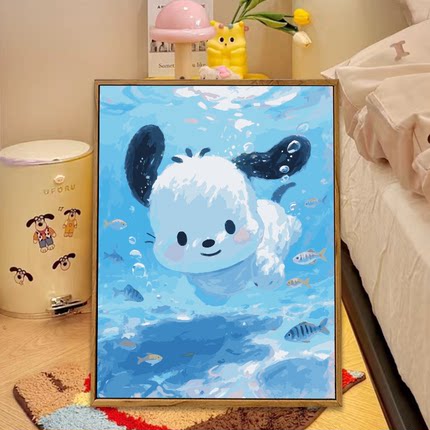 帕恰狗泳池派对数字油画diy填充填色手工绘三丽鸥卡通丙烯装饰画