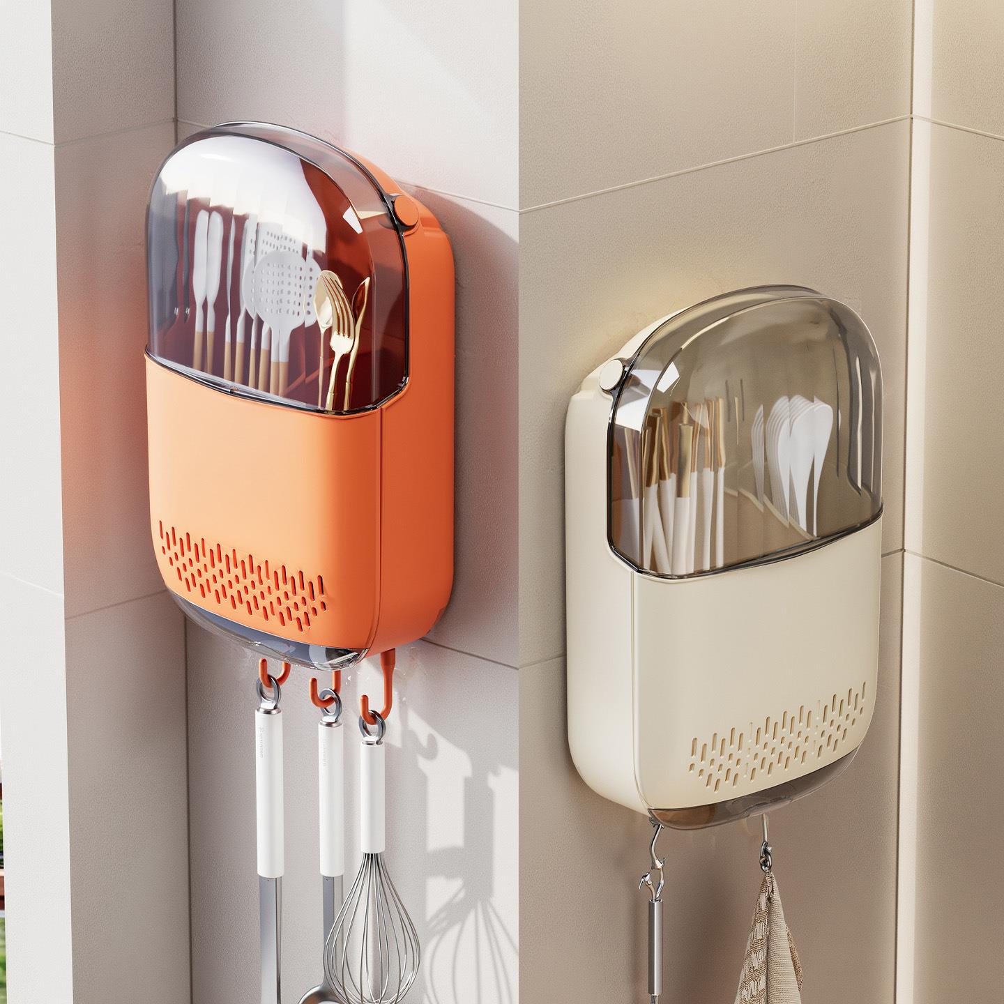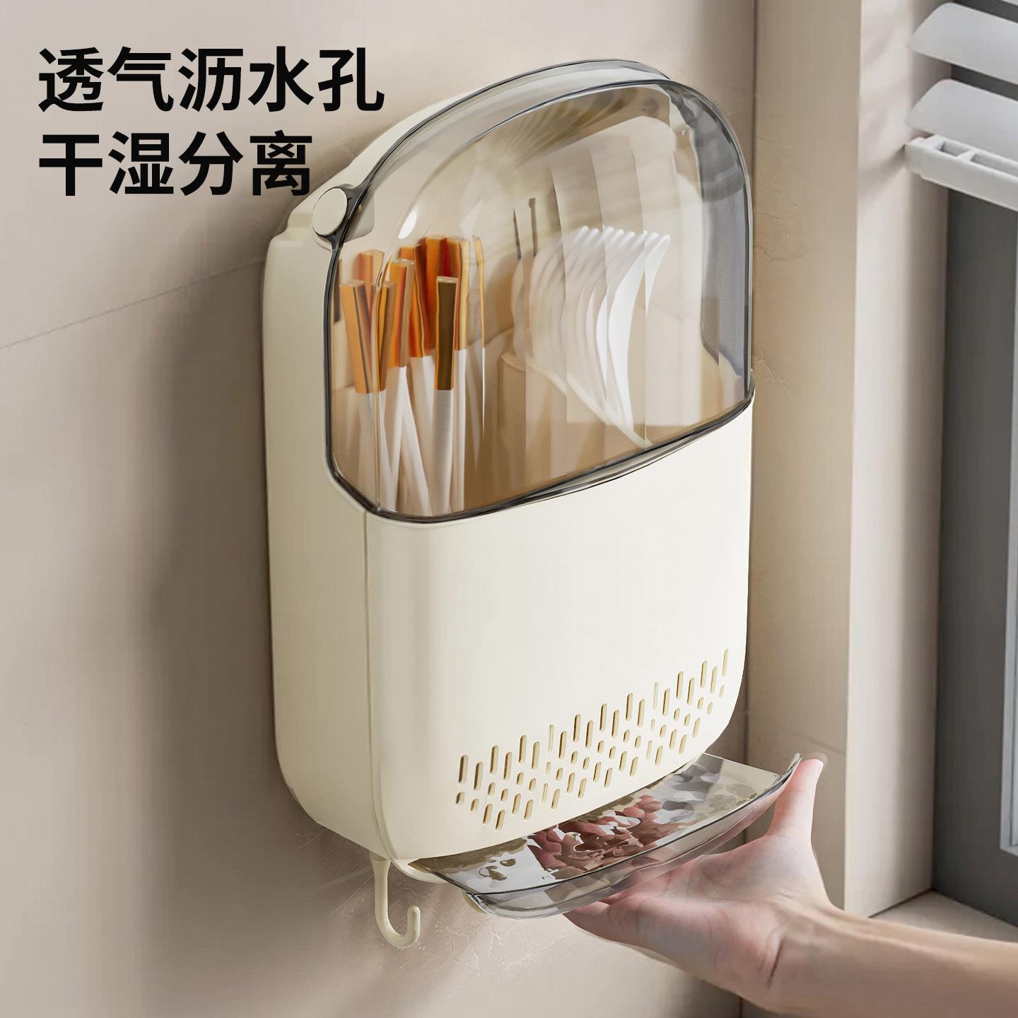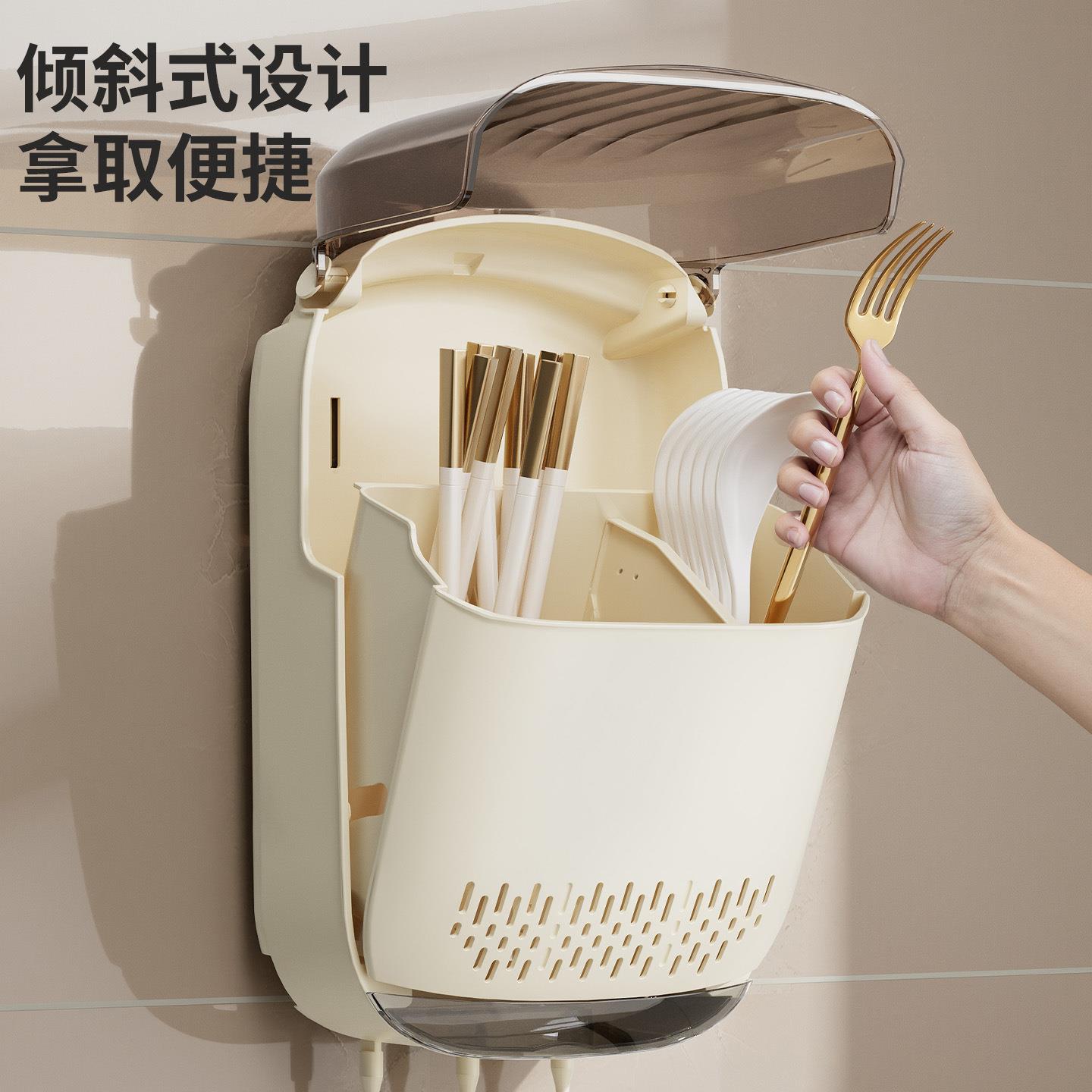 2025新款筷子筒壁挂式沥水收纳盒快子桶笼篓托厨房勺子收纳置物架