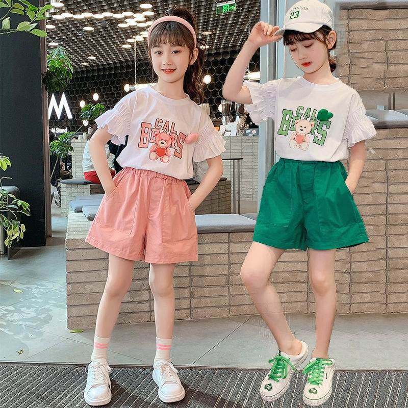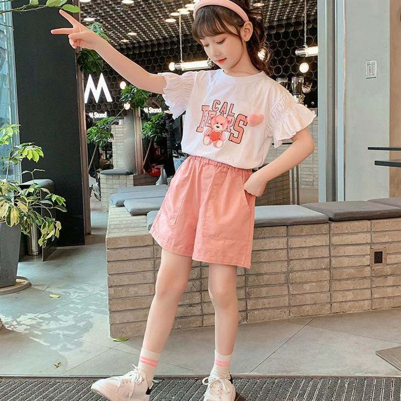女童夏装棉质套装洋气2025新款薄款女孩夏季中大童韩版短袖两件套