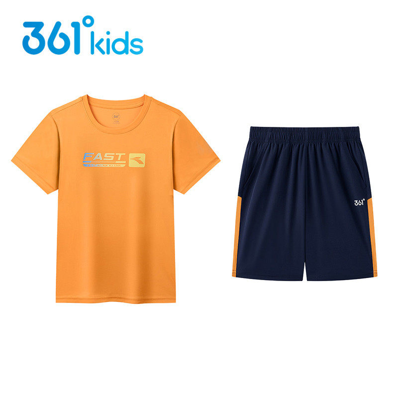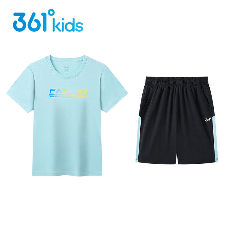 361°男女童短袖套装速干新品2024夏儿童T恤短裤两件套N32421402V