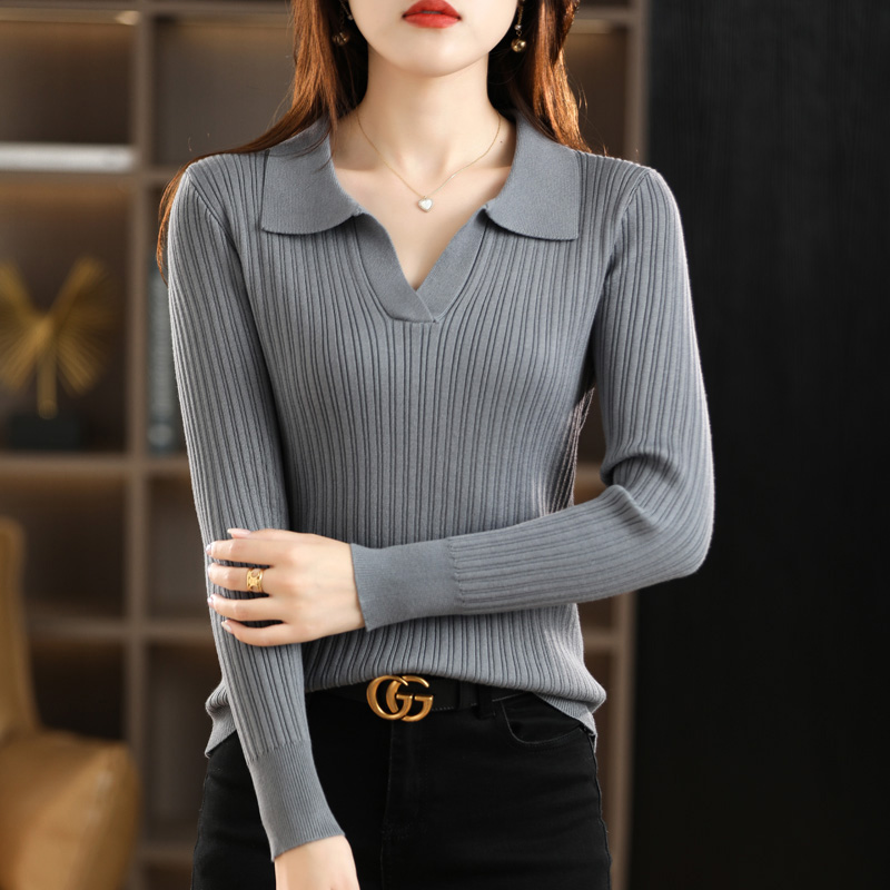 POLO领长袖针织打底衫女修身翻领套头毛衣洋气百搭内搭保暖毛衫女