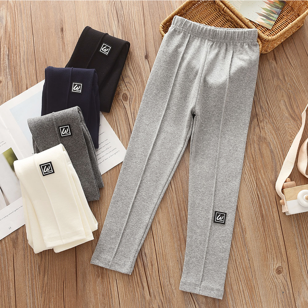 洋气女童磨毛休闲裤儿童简约小标打底裤中大童中缝修身弹力长裤子