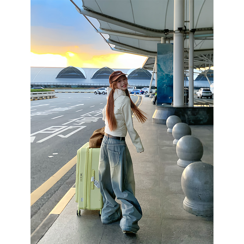 NECOYEP 美式水洗做旧阔腿弯刀牛仔裤男女宽松休闲百搭潮流长裤