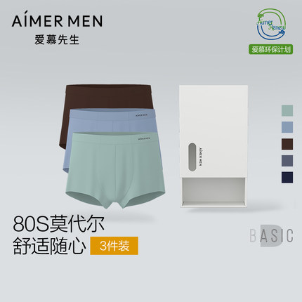 【大码3条装】爱慕先生高弹80支莫代尔抗菌男士内裤平角裤春夏