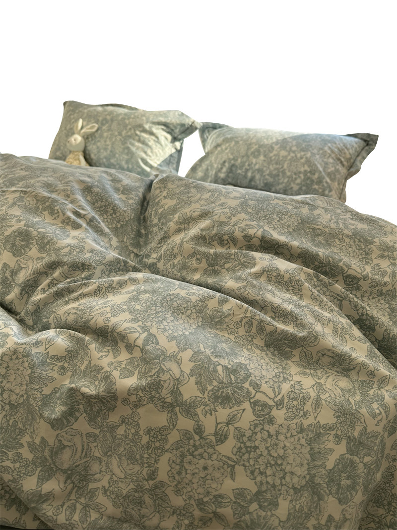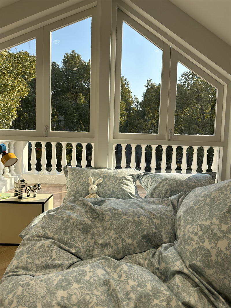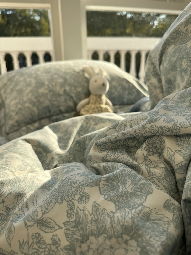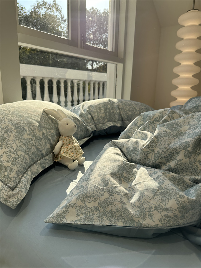 油画田园100s高支长绒棉床上蓝色四件套1.5m1.8全棉床单被套裸睡