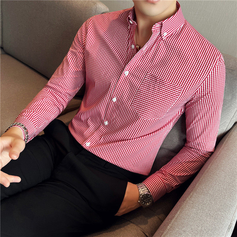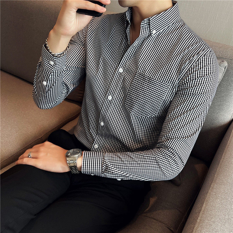 2025新款春秋条纹衬衫男长袖休闲商务衬衣韩版修身高级感格子寸衫