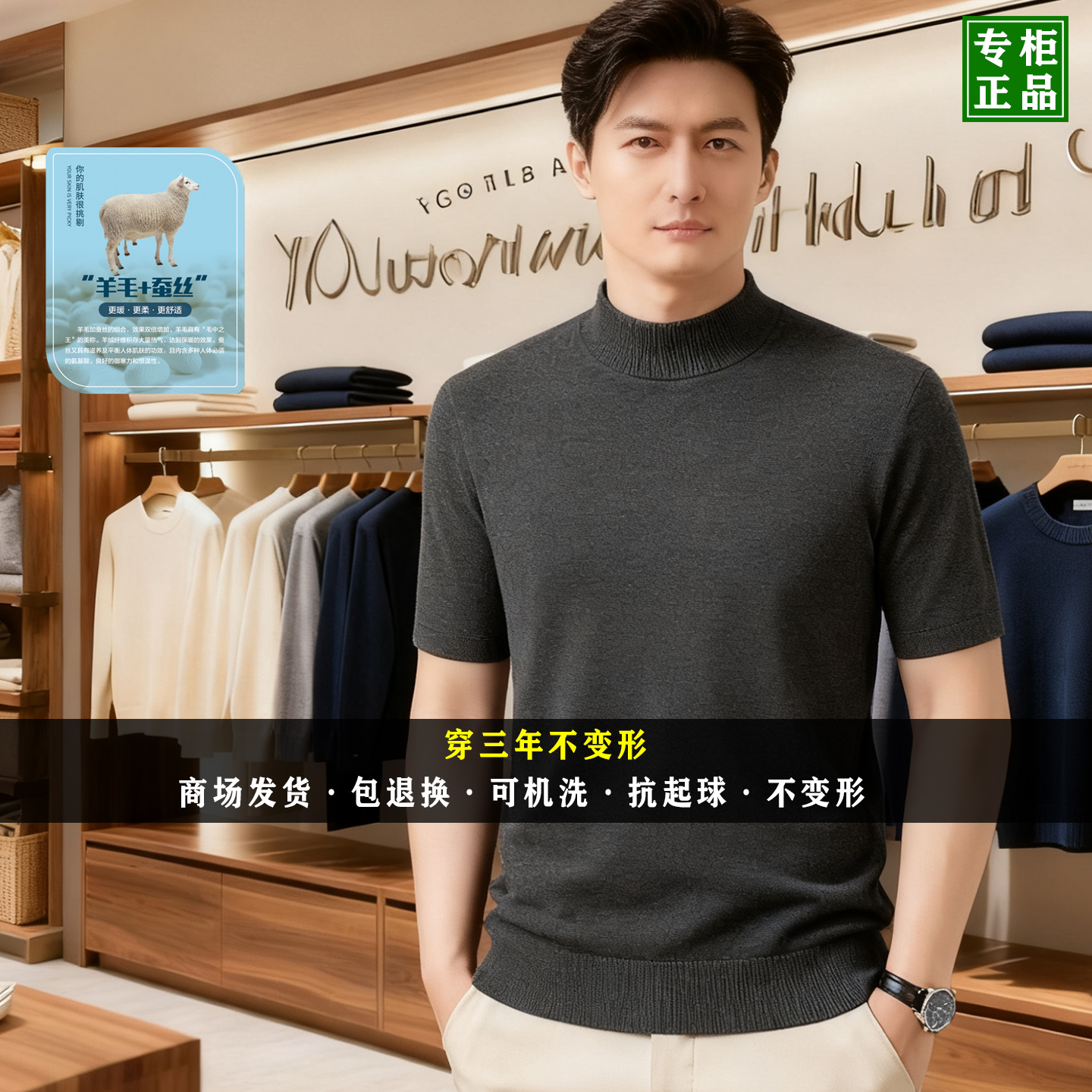 绵羊毛+桑蚕丝男士圆领短袖毛T恤