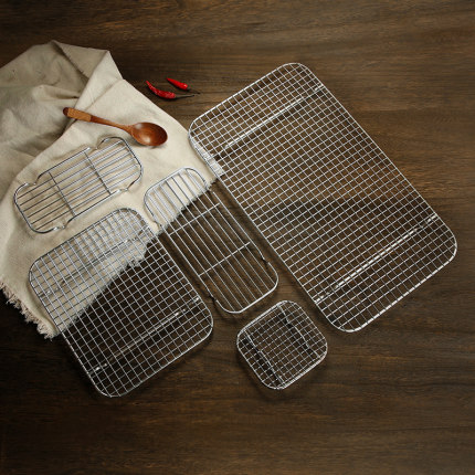 不锈钢烧烤网铁丝网格网片长方形烤网用具小格沥油网架工具圆形炉