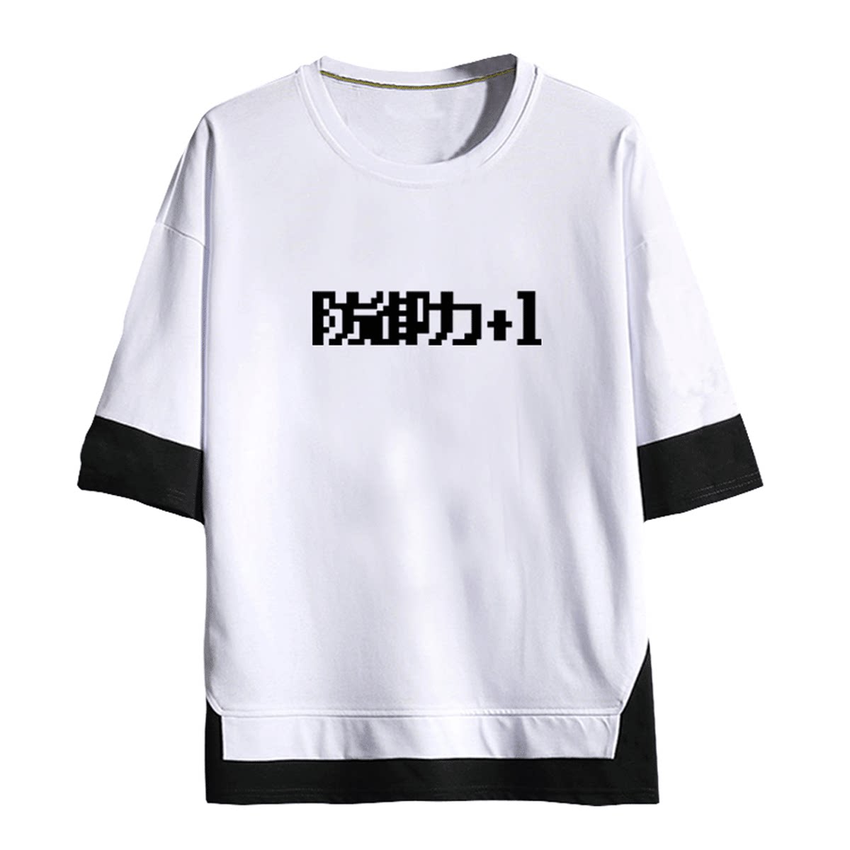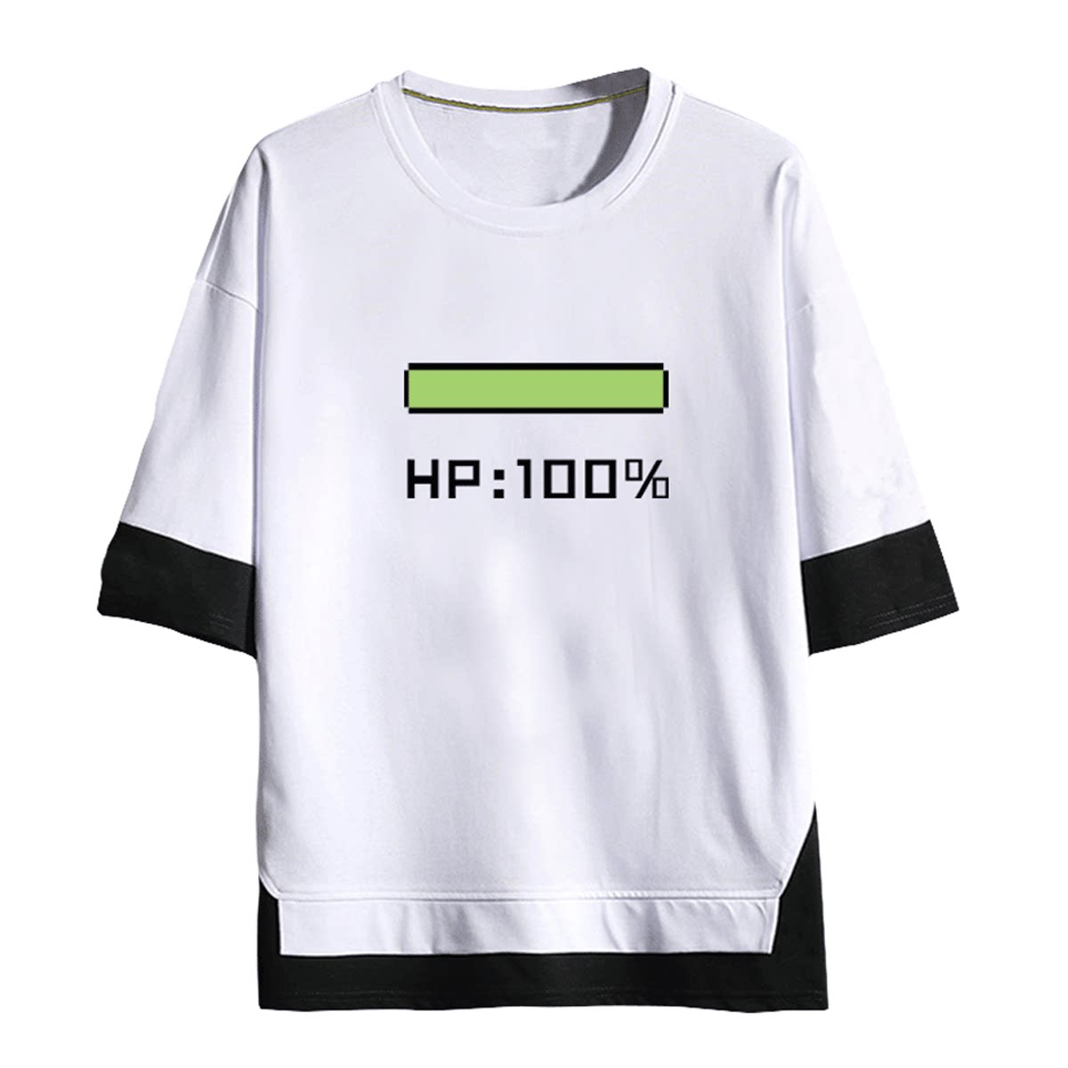 防御力+1 HP1 血条 游戏动漫周边青年男女纯棉半袖假两件短袖T恤