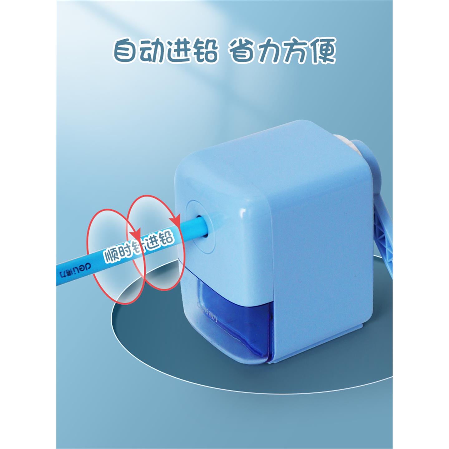 得力手摇转笔刀卷笔刀儿童小学生专用铅笔削笔器全自动充电削笔刀粗铅笔刀卷笔器电动刨笔机旋笔刀小型便携式