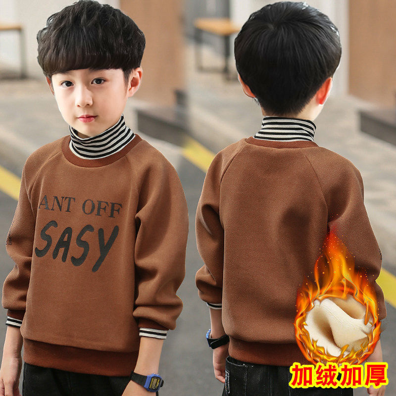 男童秋冬装卫衣加绒一体男孩