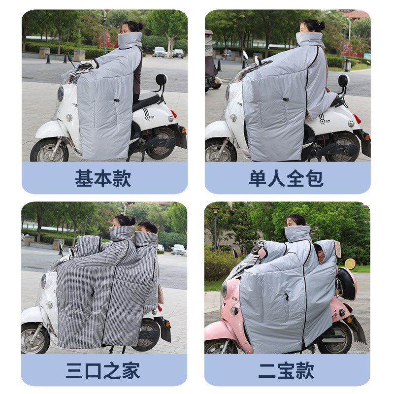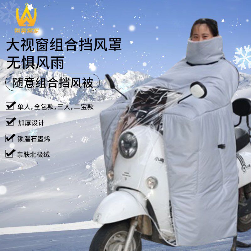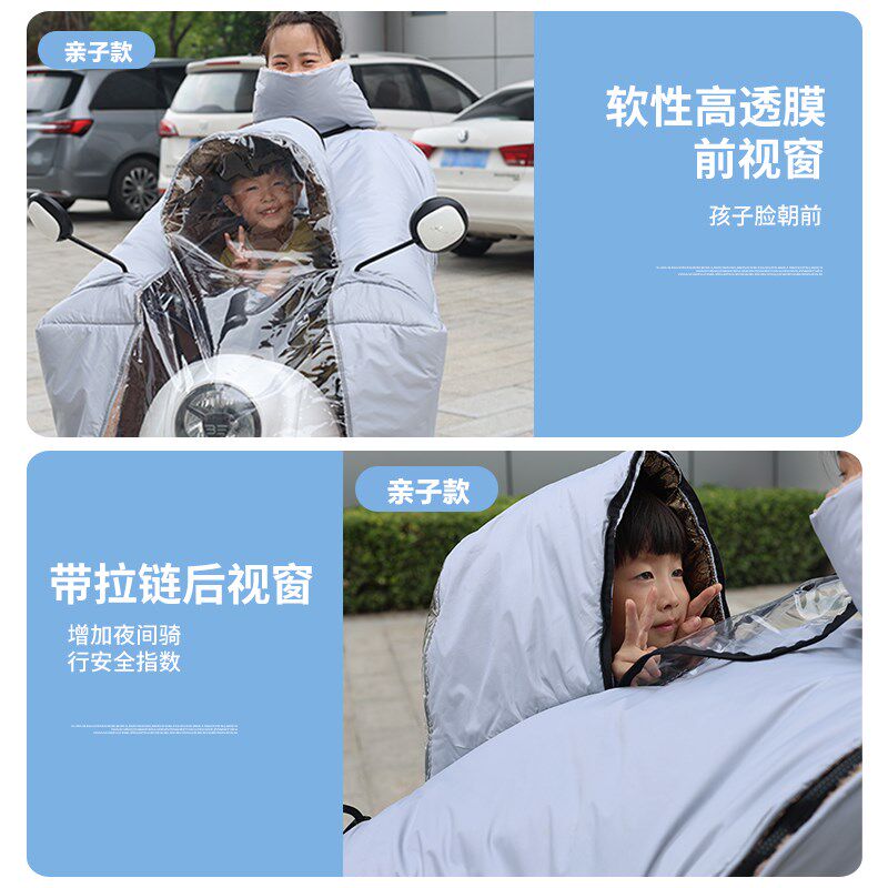 电动车亲子挡风被冬季视窗全包双人三人防雨罩斗篷款加绒加厚保暖