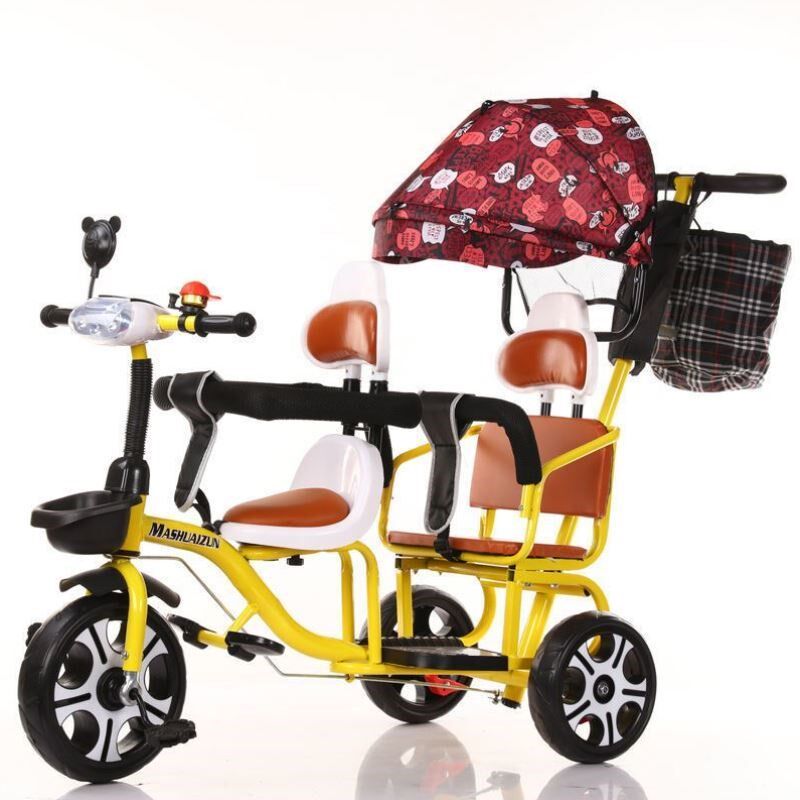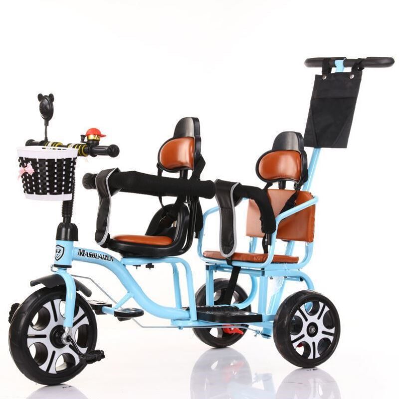 儿童双人三轮车双座二胎脚踏手推车宝宝婴儿幼儿大号1-7岁手推车