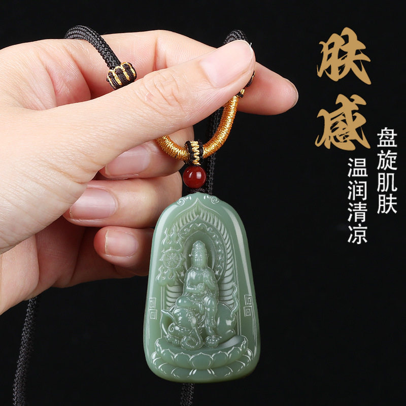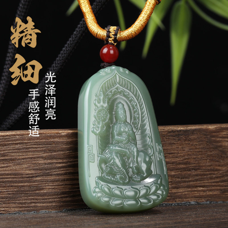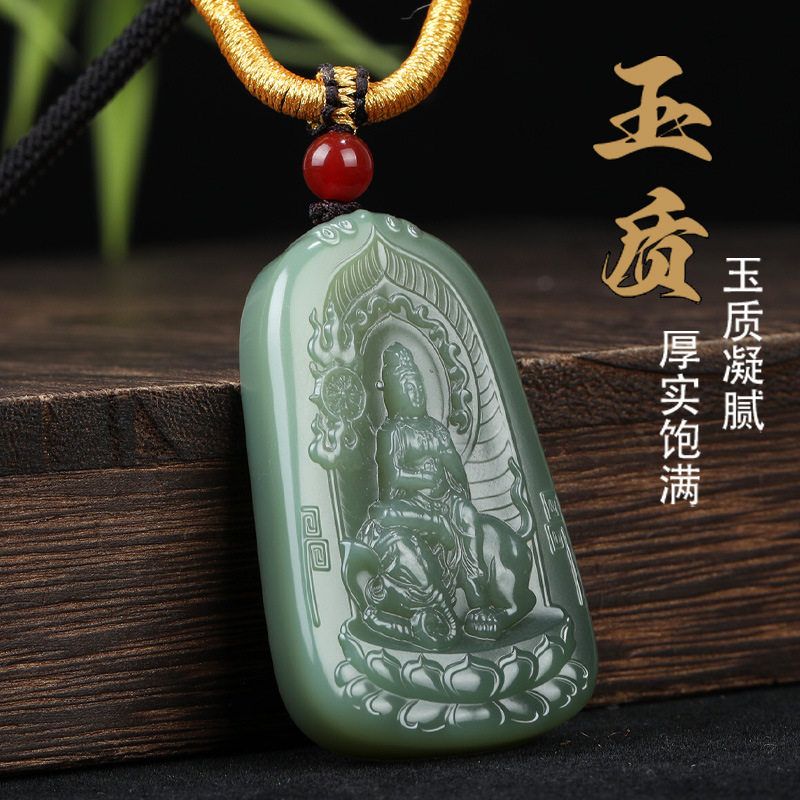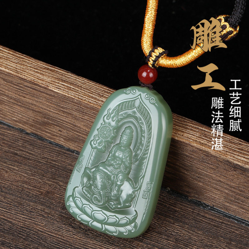 唐今玉新疆和田玉湖水绿普贤菩萨吊坠十二生肖守护神男女款挂件
