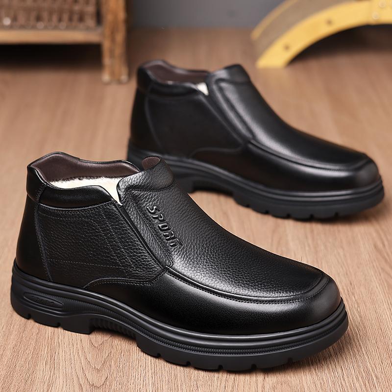 爸爸鞋冬季保暖加绒真皮高帮软底棉鞋男士中老年老人鞋加厚雪地靴