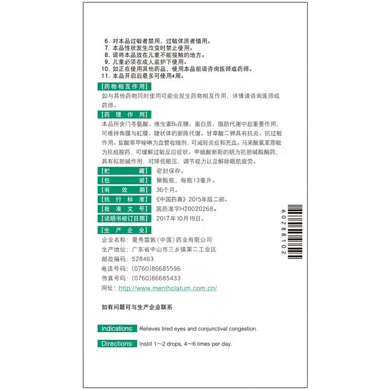 【曼秀雷敦】复方门冬维甘滴眼液13ml*1瓶/盒
