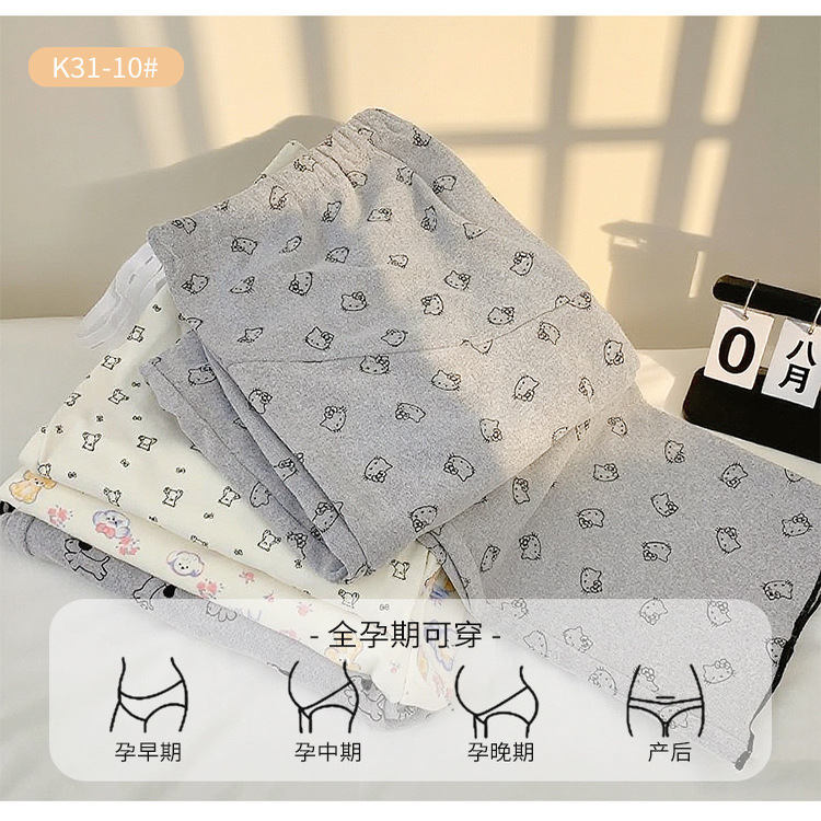 绒布孕妇睡裤春秋冬季产后月子服加厚保暖大码宽松托腹孕妇睡裤