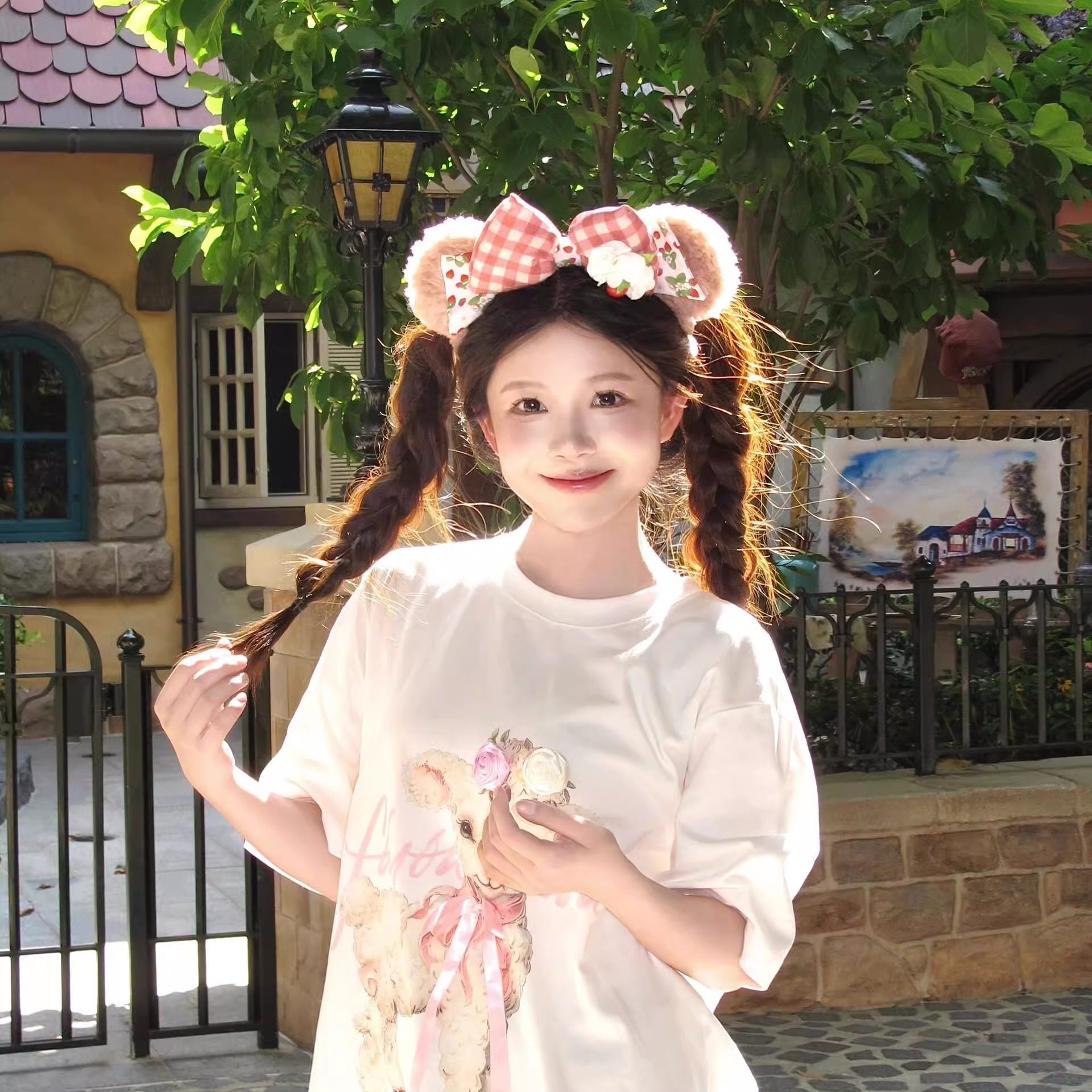草莓雪莉玫发箍迪士尼可爱甜美蝴蝶结头箍洗脸压发游乐园拍照发饰