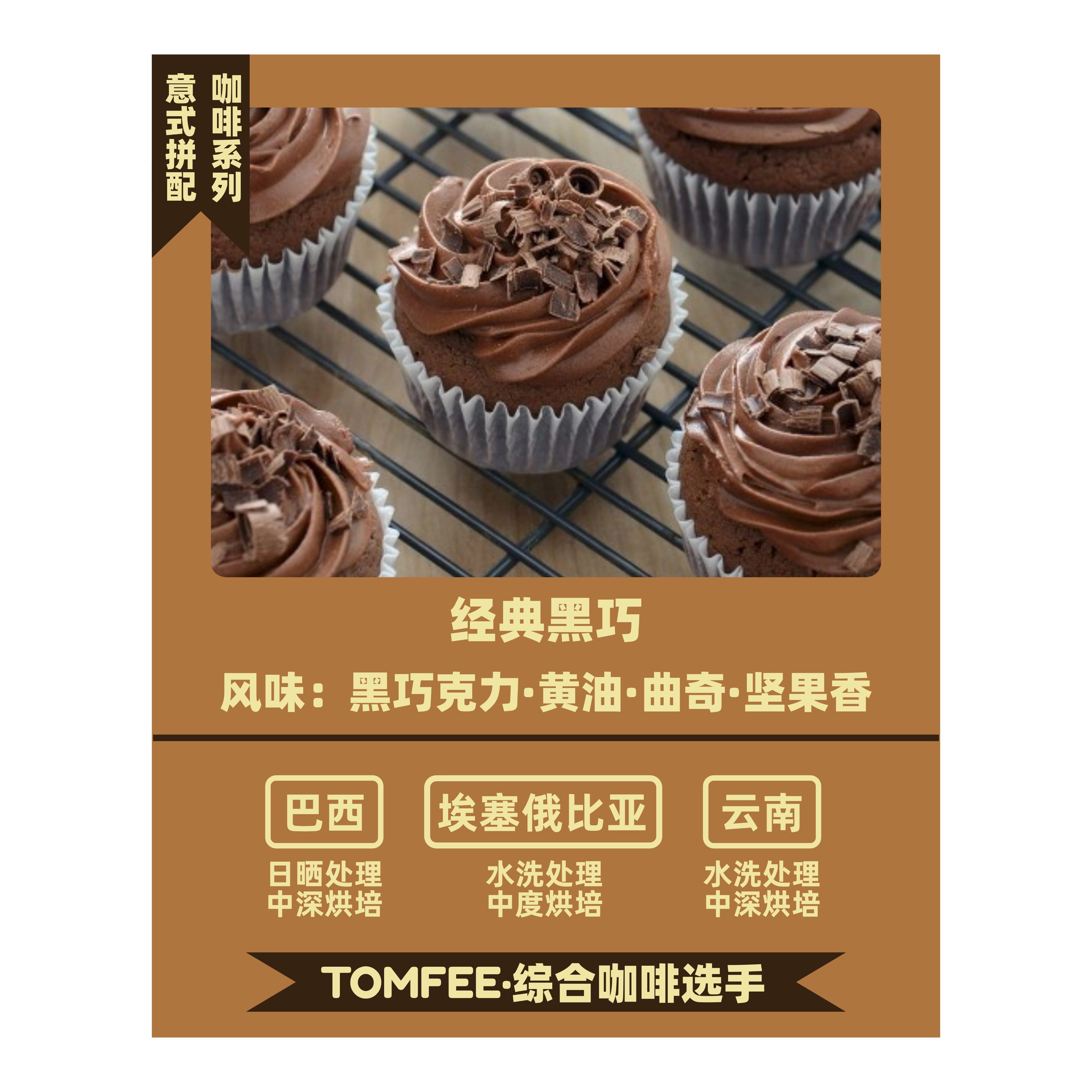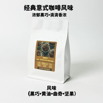 TOMFEE意式咖啡豆拼配经典黑巧克力黄油曲奇香醇特浓缩美式拿铁