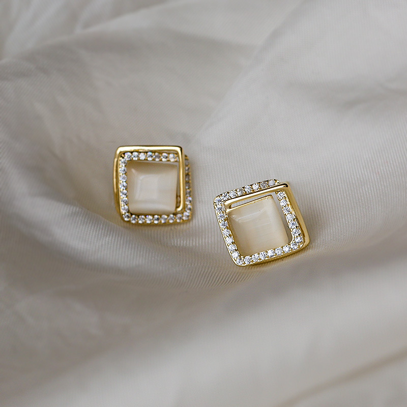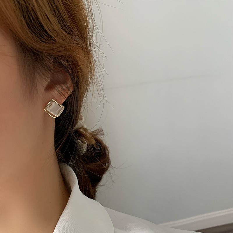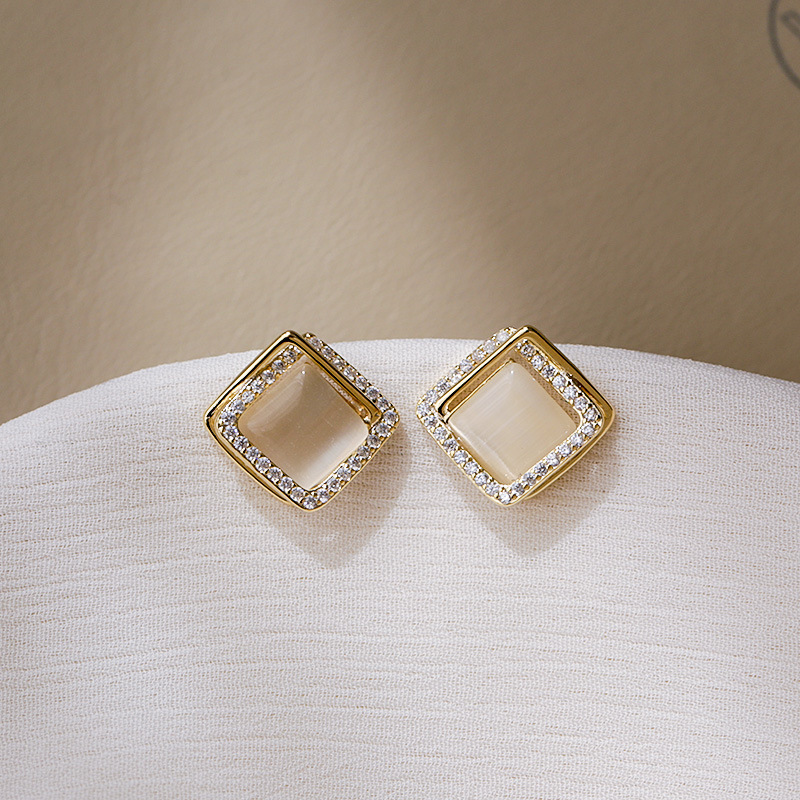 高级感猫眼石耳环韩国纯银耳钉女2023新款潮简约小精致气质网红