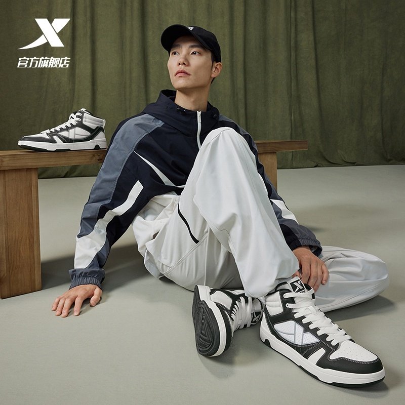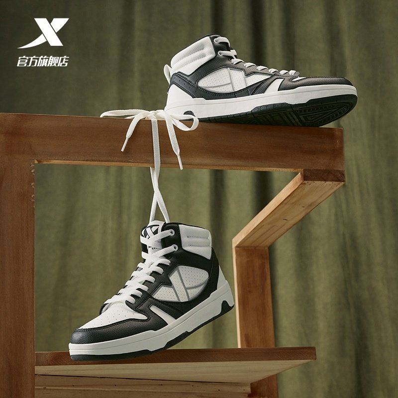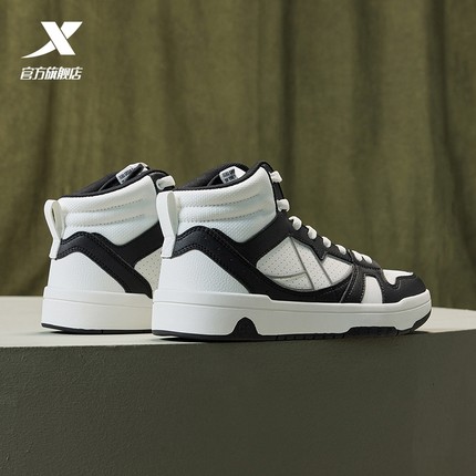 特步maxx-lite板鞋|高帮女鞋2025夏季新款休闲鞋黑白革面运动鞋子