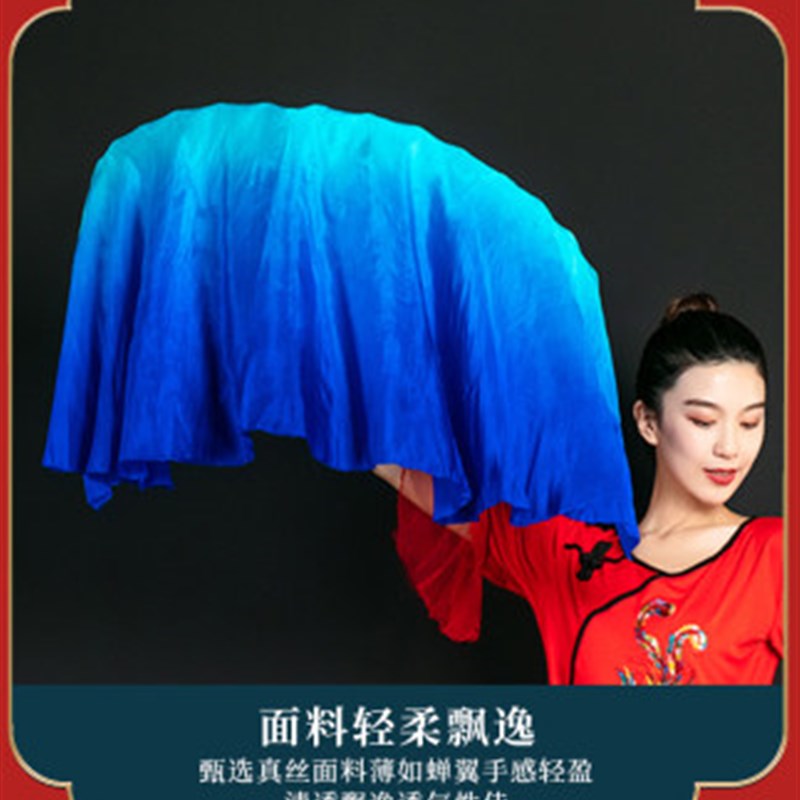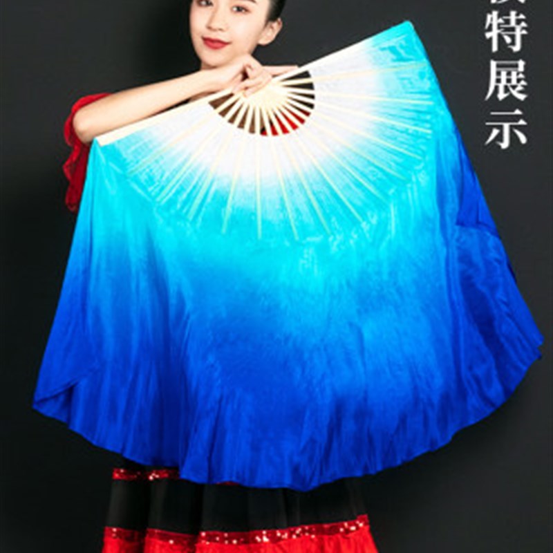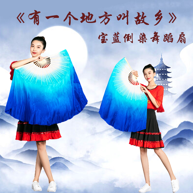 速发有个地方叫故乡蓝色倒染渐变真丝舞蹈扇子儿童跳舞道具演